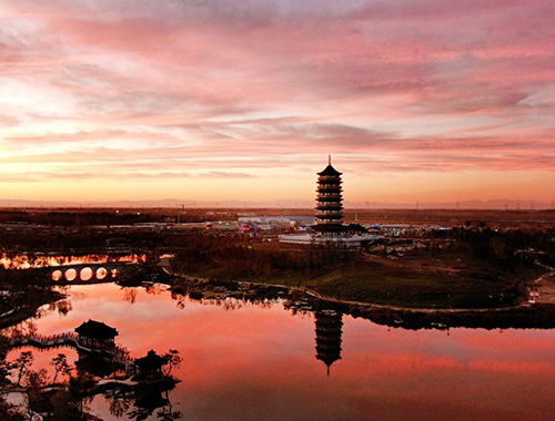 规划设计以中国园林“天人合一、师法自然”的哲学理念为指导,以中国传统园林文化为核心,以中国造园史纲为脉络,集合南北园林造园法式精粹,充分运用中国传统园林造园智慧,以“城景融合”及“三段论”的叙事式设计方法,构建“一河两湖三进苑、千年绿脉显九园,融绘古今画中来,中国园林呈经典”的空间意象。